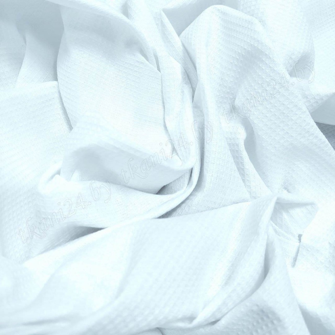 Вафельное полотно - это легкая и воздушная ткань с характерным рельефным узором, который напоминает текстуру вафель. Эта ткань часто используется для пошива полотенец, халатов, ночных рубашек, предметов домашнего текстиля и других изделий, где нужна хорошая воздухопроницаемость и впитываемость.Белое вафельное полотно создает чистый и свежий вид, который идеально подходит для домашнего текстиля. Благодаря своей структуре вафельное полотно хорошо впитывает влагу, быстро высыхает и обладает хорошей воздухопроницаемостью, что делает его популярным выбором для тканей, используемых в ванной комнате.Вафельное полотно обычно производится из натуральных волокон, таких как хлопок, лен или бамбук, что делает его нежным к коже и комфортным в использовании. Также существуют вафельные полотна из синтетических материалов, которые обладают своими уникальными свойствами.